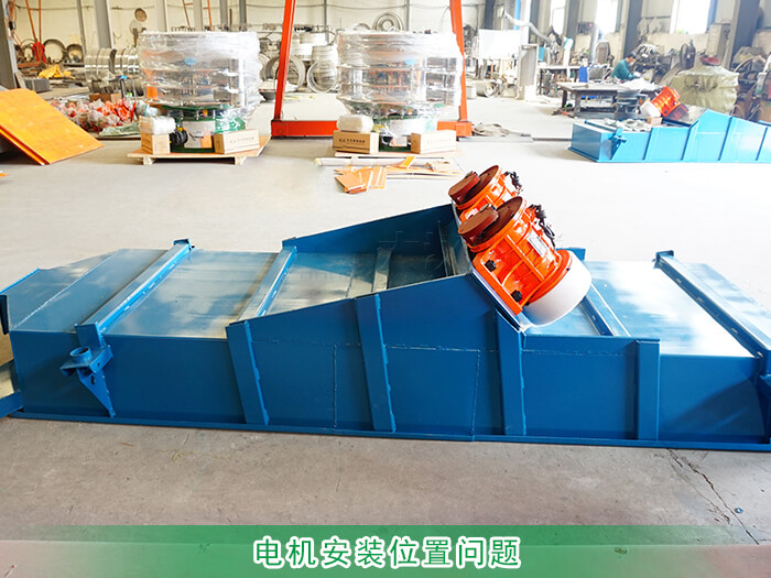 直線篩振動(dòng)電機(jī)的安裝位置有三種分別為底部、兩側(cè)、上部。如果振動(dòng)電機(jī)安裝位置靠近進(jìn)料口就會(huì)出現(xiàn)篩面物料運(yùn)行一定距離后速度降低終停留在篩面;