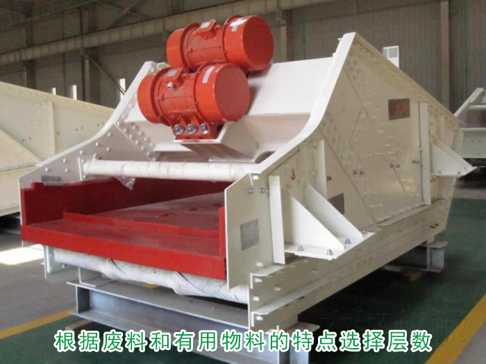 根據(jù)廢料及有用物料的特點(diǎn)選擇適當(dāng)?shù)膶訑?shù),礦用振動篩分機(jī)一般分為1-3層,用戶可以根據(jù)需要選擇。