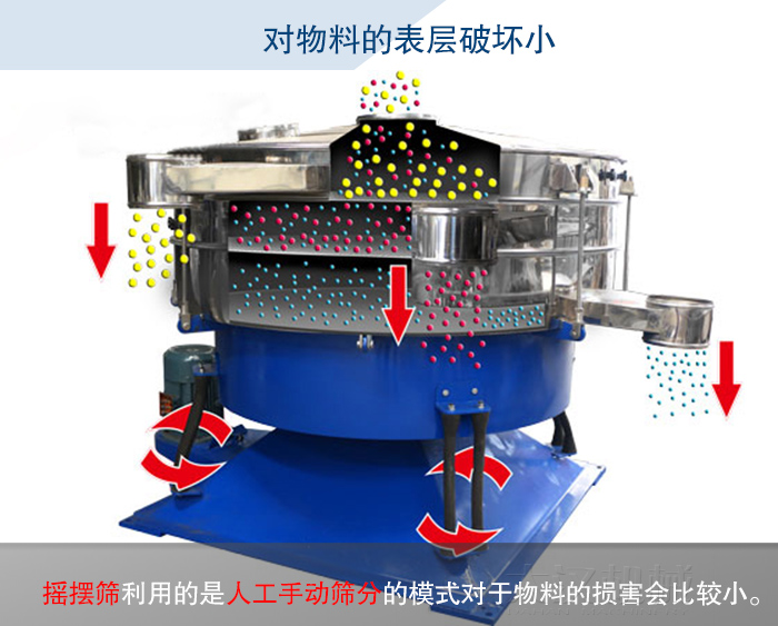 振動篩的篩分是由振動原理進(jìn)行篩分的,所以會對于物料的表層造成一定的損壞,而搖擺篩利用的是人工手動篩分的模式對于物料的損害會比較小。