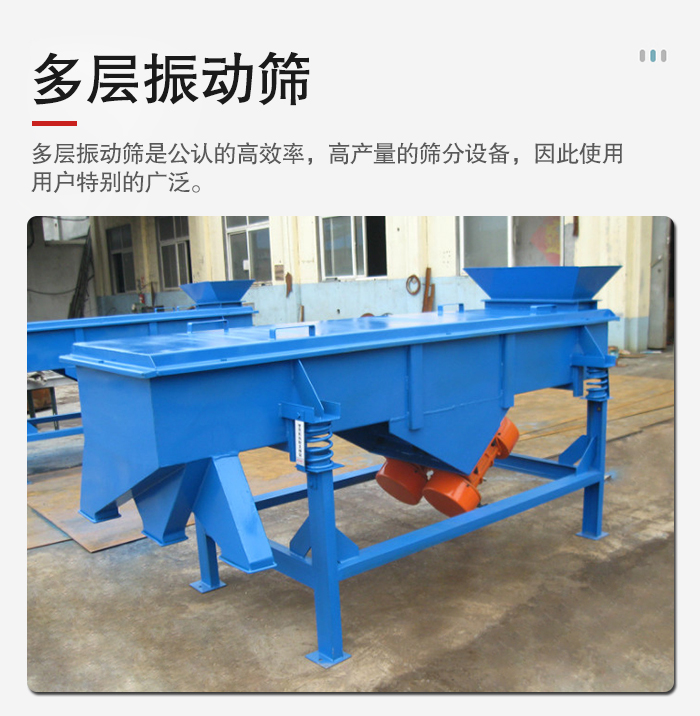 (2)產(chǎn)量低的話就可以考慮選擇小型號的多層振動篩,產(chǎn)量高就需要選擇大型號的多層振動篩。