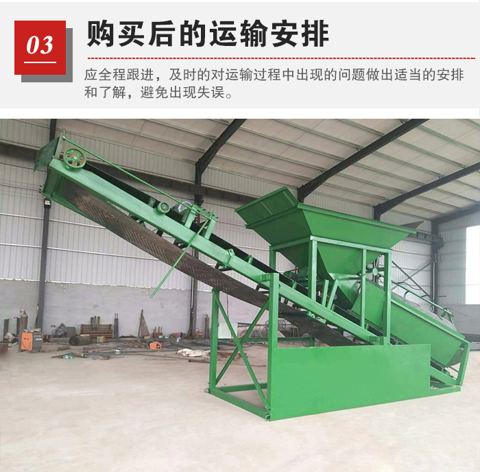 篩沙機(jī)在采購?fù)戤吅?,廠家會在設(shè)備完成后進(jìn)行運(yùn)輸發(fā)貨,此時(shí),用戶應(yīng)全程跟進(jìn),及時(shí)的對運(yùn)輸過程中出現(xiàn)的問題做出適當(dāng)?shù)陌才藕土私?,避免廠家出現(xiàn)失誤,出現(xiàn)小配件漏發(fā)等問題。